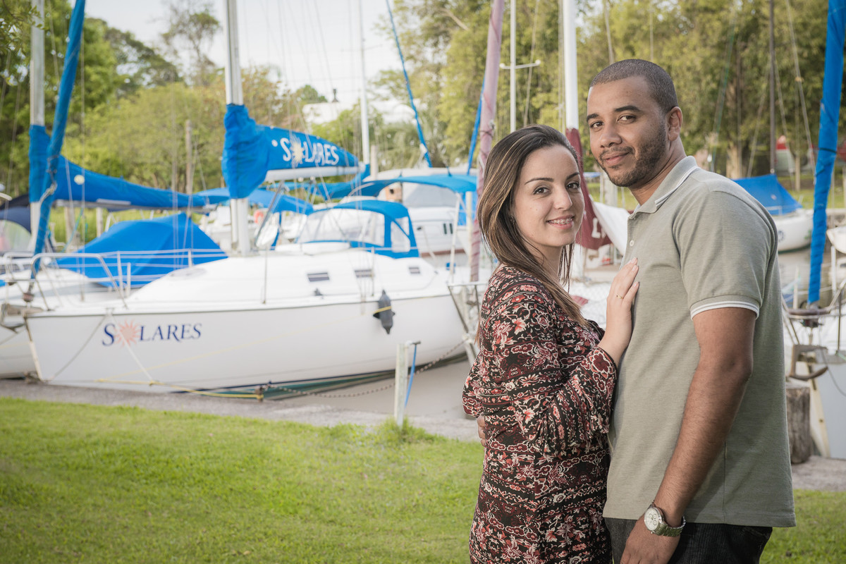 Noiva surpresa com o noivo mostrando a data do casamento save the date pre wedding. Foto Marco Moscarelli