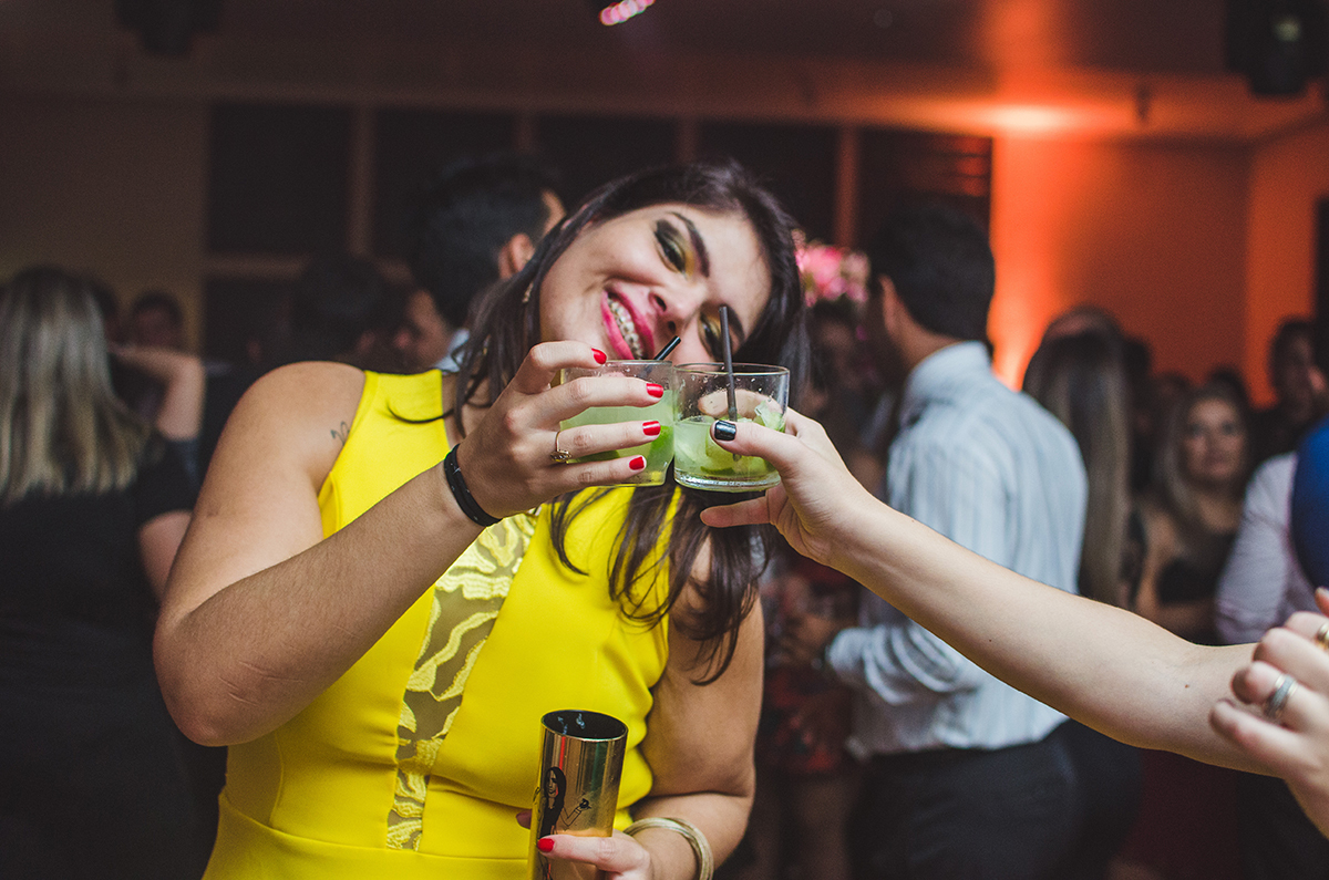 Fotografia do momento em que a formada cumprimenta seus convidados com muitos abraços. Foto por Marco Moscarelli Fotografo